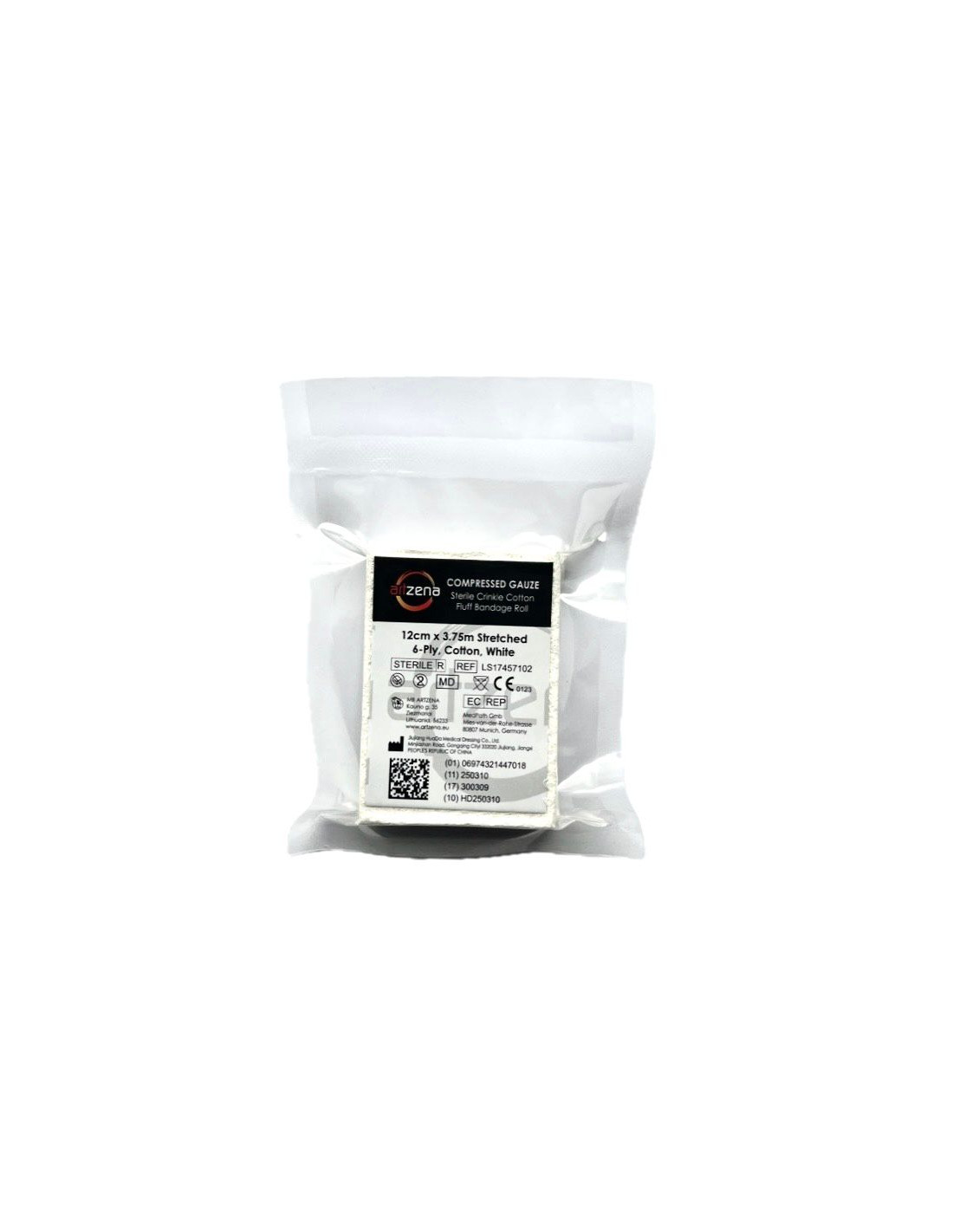 1. Sterilus, suspaustas tvarstis – 375 cm x 12 cm, 6 sluoksniai