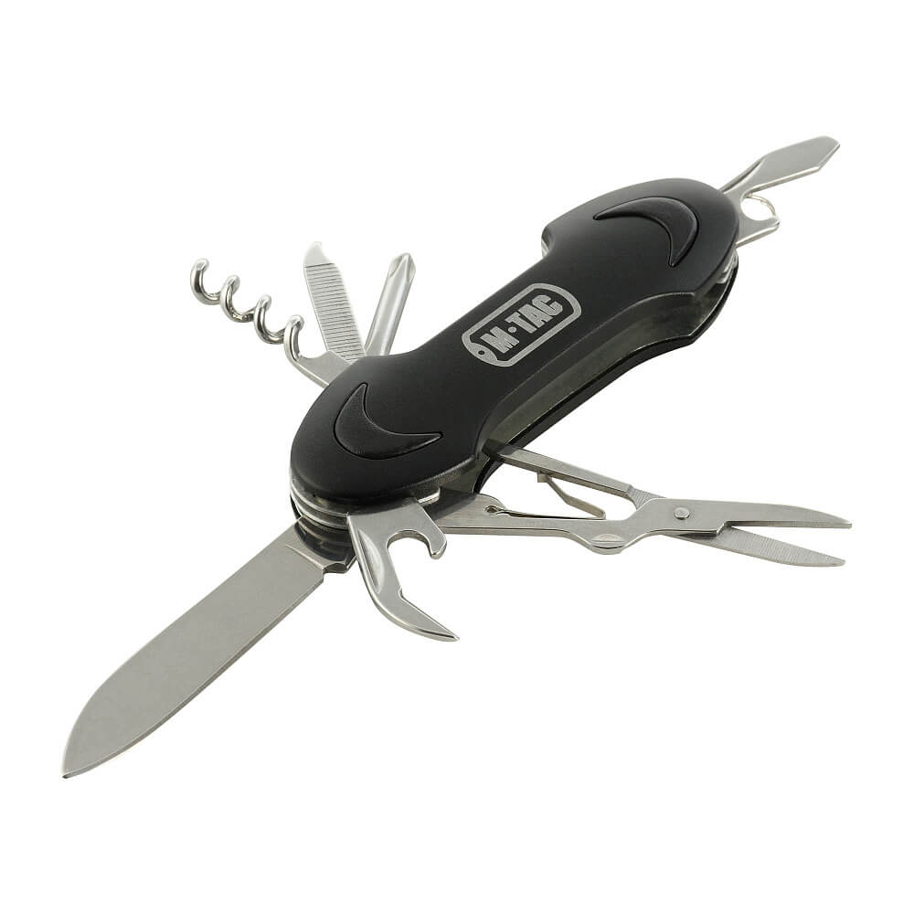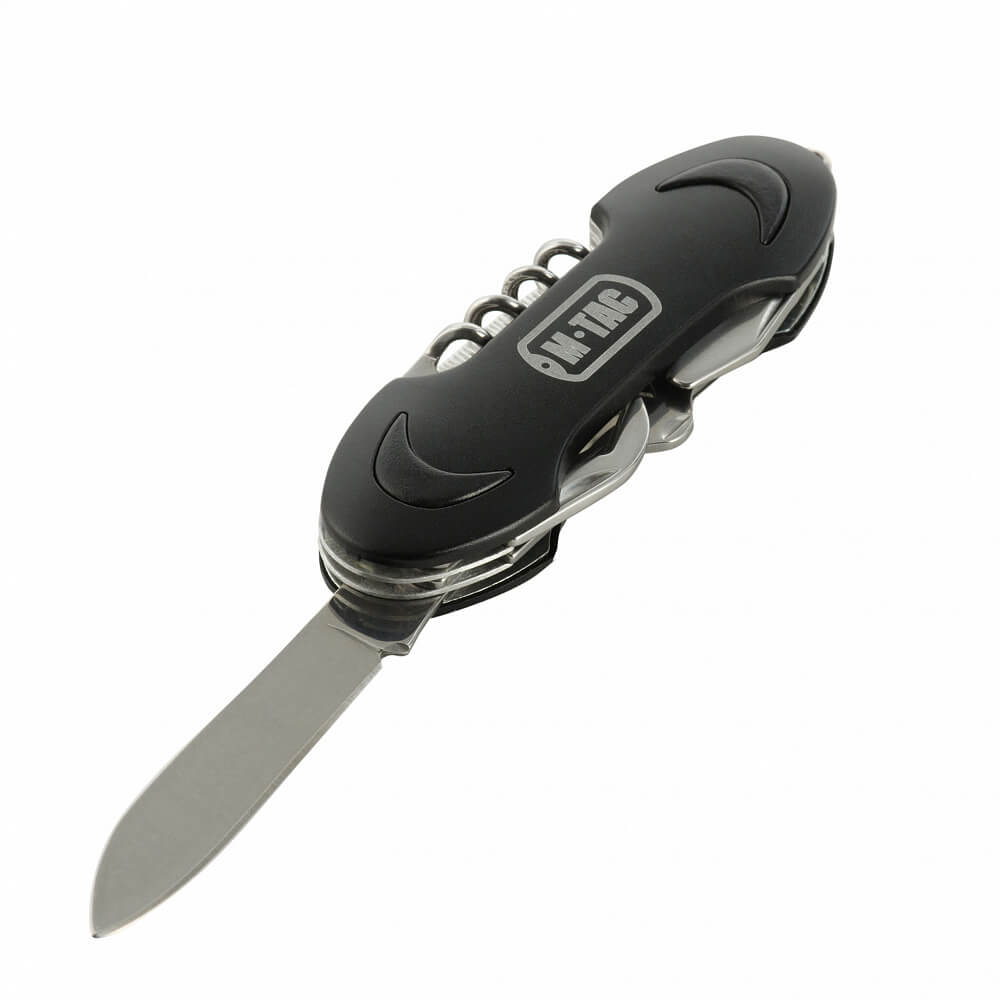 Mažas plieninis, sulankstomas M-Tac peiliukas (7 įrankiai) gali drąsiai konkuruoti su žinomo Šveicarijos prekės ženklo gaminiais dėl savo funkcionalumo. Rinkinyje yra net 7 įrankiai kartu su patogiu atlenkiamu peiliu. Tuo pačiu komplekto dydis ir svoris – vos 95 gramai – leidžia jį visada turėti su savimi.