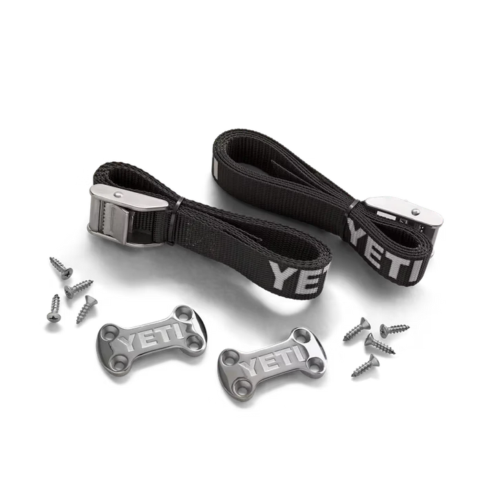 Apsaugokite savo šaldytuvą nuo slydimo ar judėjimo su YETI® tvirtinimo komplektu. Šis komplektas padeda patikimai pritvirtinti šaldytuvą prie valties, sunkvežimio kėbulo ar priekabos. Kai nenaudojama, lieka tik žemo profilio tvirtinimo plokštelės – niekas netrukdys ar neužklius.