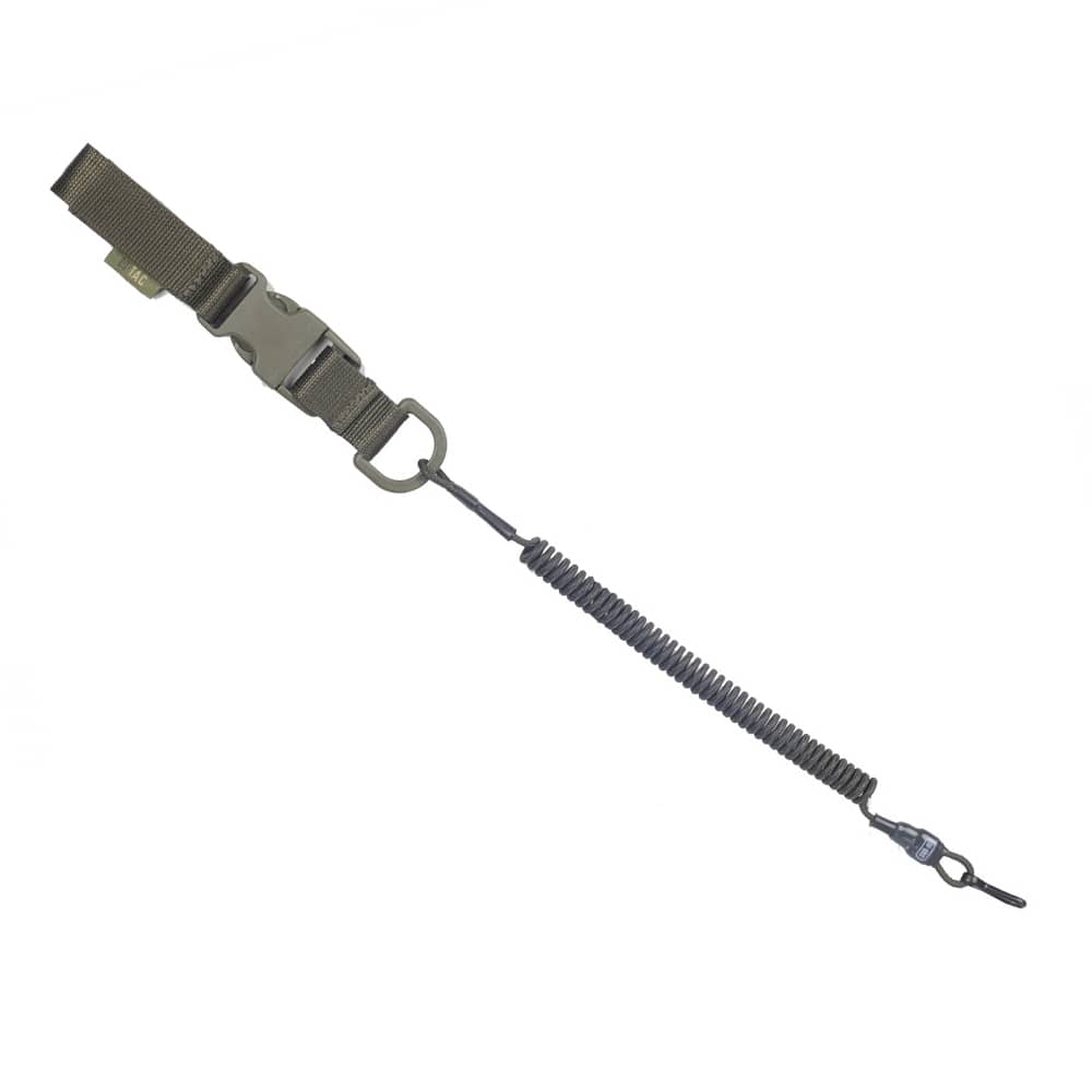 M-Tac Safety spiralinis pistoleto dirželis sukurtas siekiant sumažinti ginklo pametimo ar jo užgrobimo riziką. Daiktai prie dirželio tvirtinami naudojant karabinus.