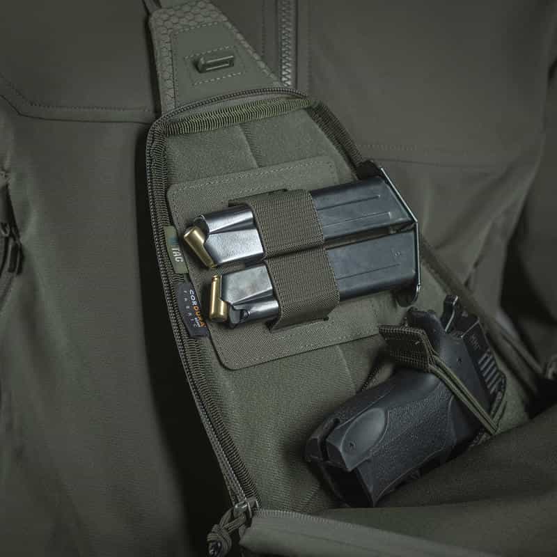 M-Tac modulinis įdėklas dėtuvėms – Cordura 1000D įdėklas su Velcro tvirtinimu, skirtas 2 pistoletų dėtuvėms arba EDC daiktams (žibintuvėlis, multitool).