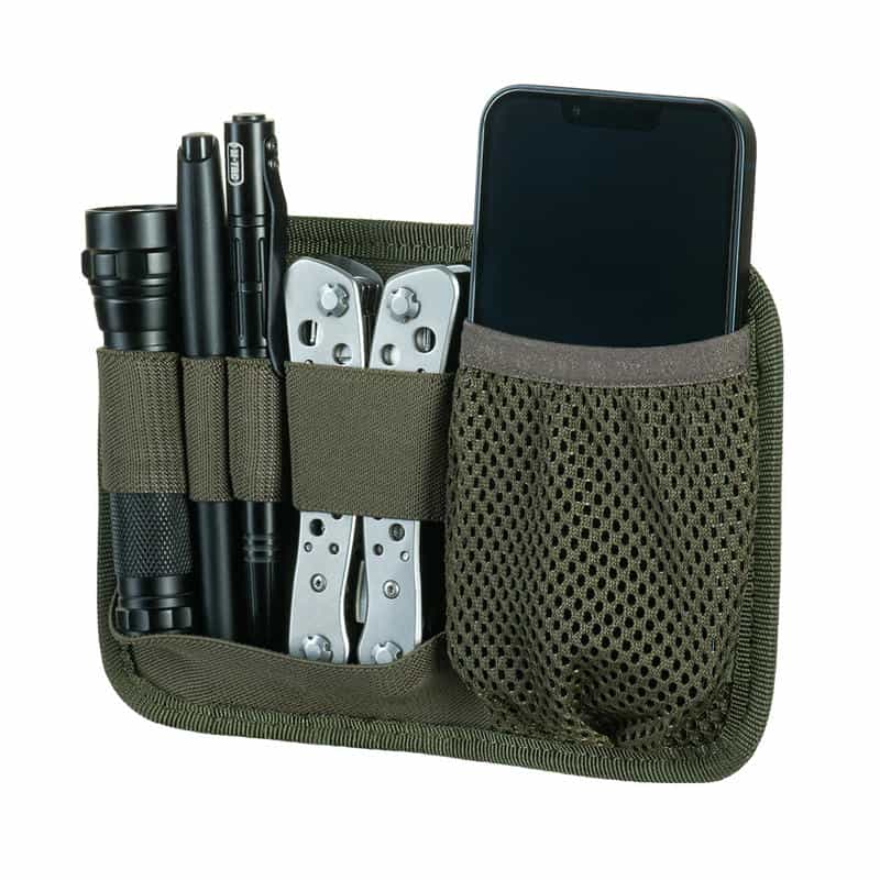 Elastiniai laikikliai pritaikyti taktiniam rašikliui, žibintuvėliui, raktų pakabukui, multiįrankiui, peiliui, telefonui bei kitiems naudingiems įrankiams ar įrangai. Organizatorius taip pat turi specialų raktų laikiklį.