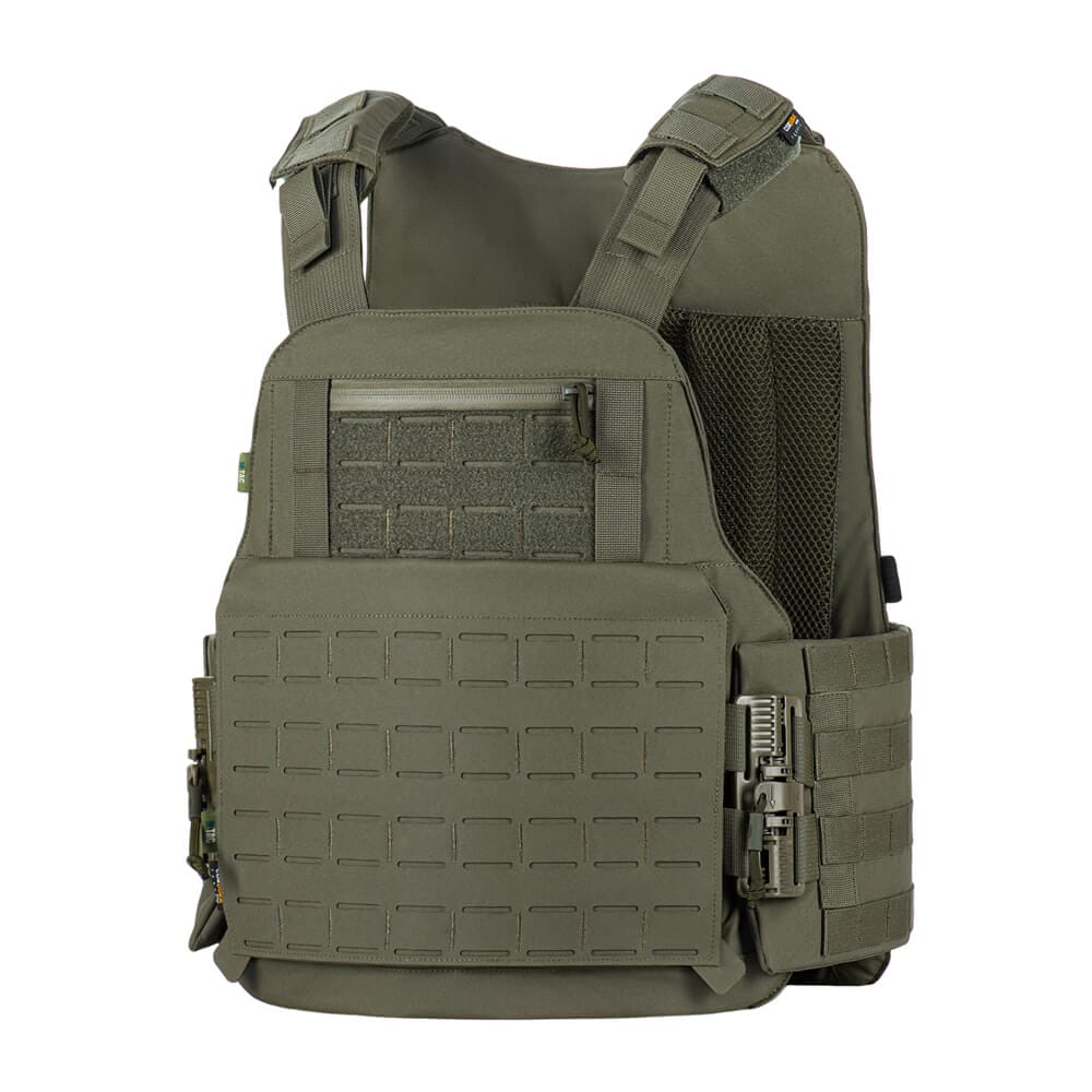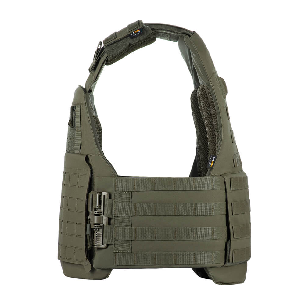 Liemenė pagaminta iš aukštos kokybės Cordura 500D – itin tvirto audinio, atsparaus dilimui ir didelėms apkrovoms. Pratęstos cummerbund šoninės juostos su MOLLE sąsaja (4 kilpos) leidžia pritvirtinti papildomą įrangą, pavyzdžiui, horizontalią pirmosios pagalbos vaistinėlę ar pagalbinius dėklus.